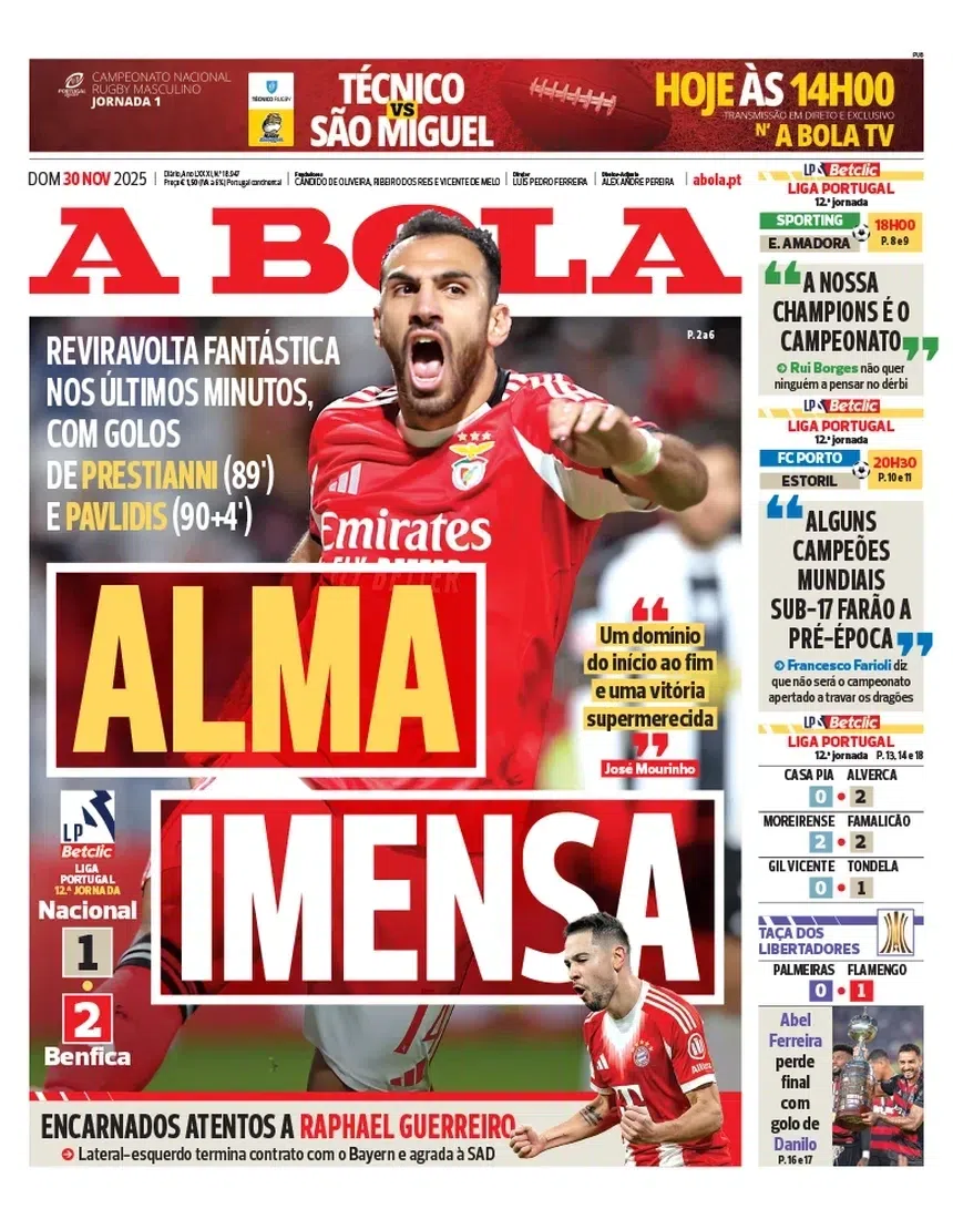 Το πορτογαλικό αθλητικό μέσο «A Bola» εξύμνησε τον Βαγγέλη Παυλίδη, χαρακτηρίζοντάς τον «Έλληνα Θεό», μετά το νικητήριο γκολ που πέτυχε στις καθυστερήσεις και χάρισε στη Μπενφίκα τη νίκη με 2-1 επί της Νασιονάλ Μαδέιρα.