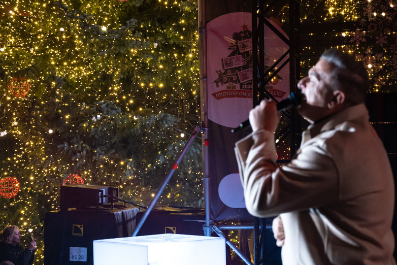Γιορτινές μελωδίες και παραδοσιακά κάλαντα δημιούργησαν μια ζεστή, εορταστική ατμόσφαιρα, ενώ τη στιγμή που το επιβλητικό χριστουγεννιάτικο δέντρο φωτίστηκε, ο ουρανός της πόλης γέμισε με αμέτρητα πυροτεχνήματα, δημιουργώντας ένα εντυπωσιακό θέαμα.