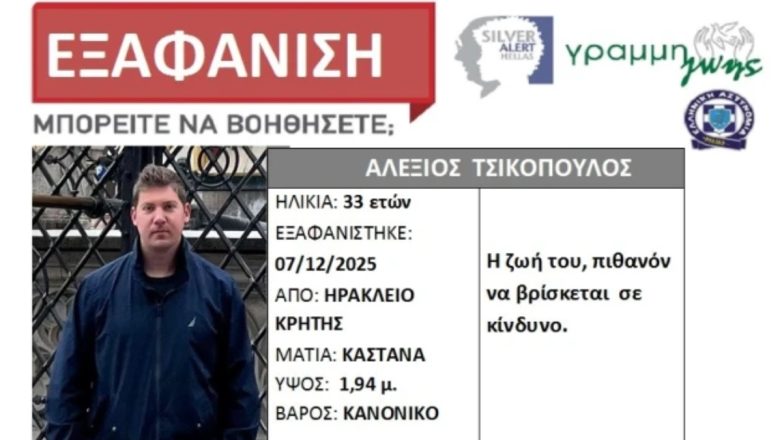 Παρά τις συνεχόμενες προσπάθειες αρχών, διασωστών, εθελοντών και της οικογένειας του δεν έχει βρεθεί ακόμα κανένα ίχνος του 33χρονου.