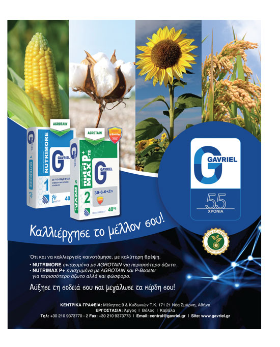 Η σύγχρονη γεωργία είναι πολύ απαιτητική και για αυτό τον λόγο απαιτούνται λύσεις αξιόπιστες και υψηλής απόδοσης. Σε αυτή την λογική έχει µπει η εταιρεία GAVRIEL εδώ και πάνω από 15 χρόνια. Για αυτό και πλέον τα λιπάσµατα τεχνολογίας που προωθεί έχουν αποδείξει την αποτελεσµατικότητά τους και έχουν κερδίσει χιλιάδες πιστούς χρήστες σε όλη την Ελλάδα.