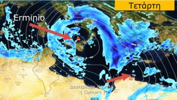 Συγκεκριμένα, όπως αναφέρεται, το καιρικό σύστημα στη δυτική Μεσόγειο, με την ονομασία «Erminio» (όπως ονομάστηκε από τη Μετεωρολογική Υπηρεσία της Ιταλίας – Ομάδα Κεντρικής Μεσογείου), κινούμενο νοτιοανατολικά προβλέπεται να επηρεάσει την Τετάρτη 01-04-26 και την Πέμπτη 02-04-26 τις περισσότερες περιοχές της χώρας, με μεγάλης διάρκειας και έντασης βροχές και καταιγίδες και πιθανώς με τοπικές χαλαζοπτώσεις.