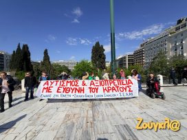 Οι Σύλλογοι Γονέων και Κηδεμόνων των Ειδικών Δημοτικών Σχολείων, μαζί με φορείς της ειδικής αγωγής και της αναπηρίας, πραγματοποίησαν το πρωί της Τρίτης (28/4), στις 10:00, συγκέντρωση διαμαρτυρίας στο Σύνταγμα, διεκδικώντας ισότιμη και αξιοπρεπή πρόσβαση των παιδιών με αναπηρία στη Δευτεροβάθμια Ειδική Εκπαίδευση μέσα στον μεγαλύτερο Δήμο της πρωτεύουσας της χώρας.